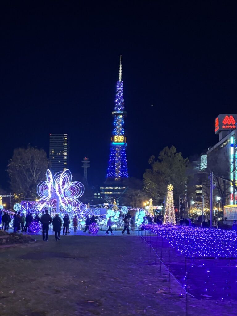 この時期の大通公園では、ホワイトイルミネーションやミュンヘンクリスマス市といったイベントが毎年開催され、冬の雰囲気を感じさせます。