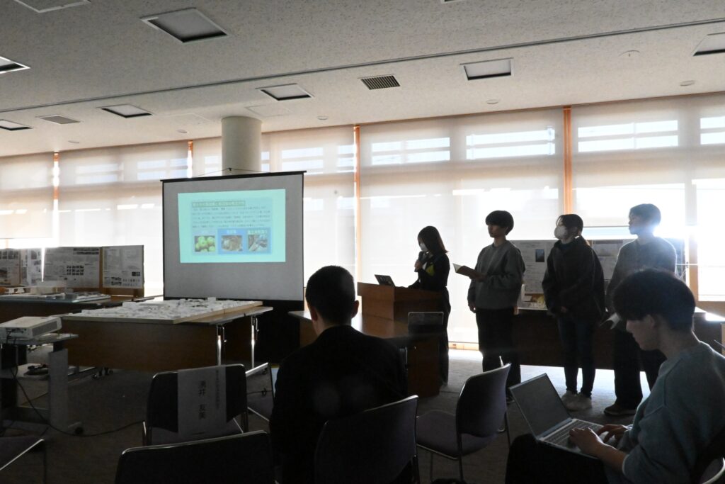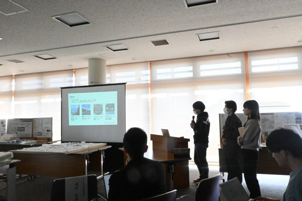 最初に、私たちが設定したリサーチを行う4つの視点である「ランドマーク」「生業」「アクティビティ」「歴史・水脈」について発表しました。