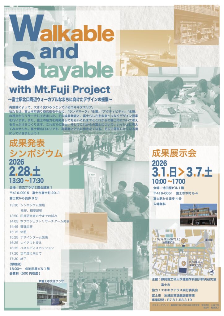 2026.2.28に富士市交流プラザにて「Walkable & Stayable with Mt.Fuji Project」のシンポジウムが開催されました。