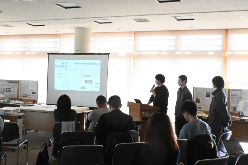 議論では、私たちの提案物がまちへ点在させやすいか、地場産業との関連性というような具体的な内容から始まり、まちの断絶はなぜ生まれてしまうのかという問題へ切り込む内容も!